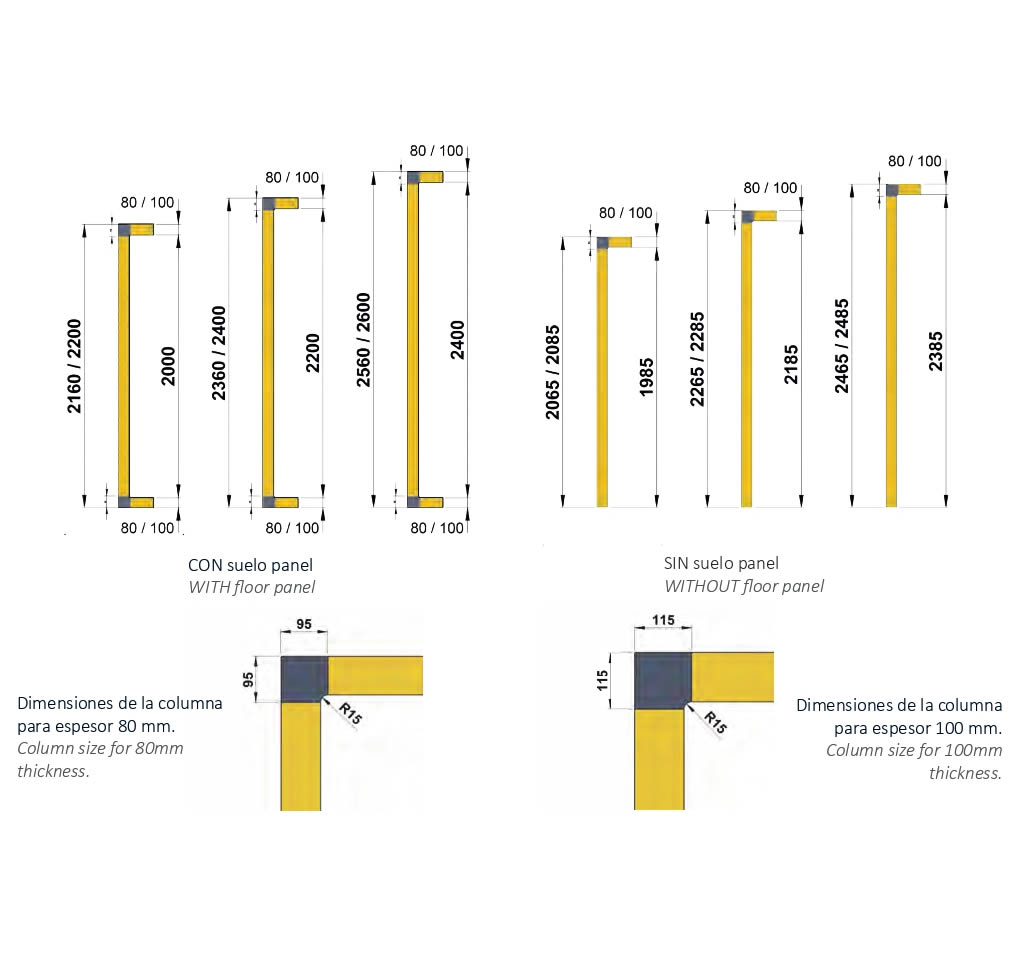 - Modularidad 400, 800, 1000 y 1200 mm facilita la adaptabilidad a las dimensiones de su recinto.